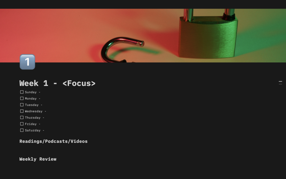 ✔ 10 Weekly Templates: Each weekly template prompts for resources, lessons learned, and weekly reviews.